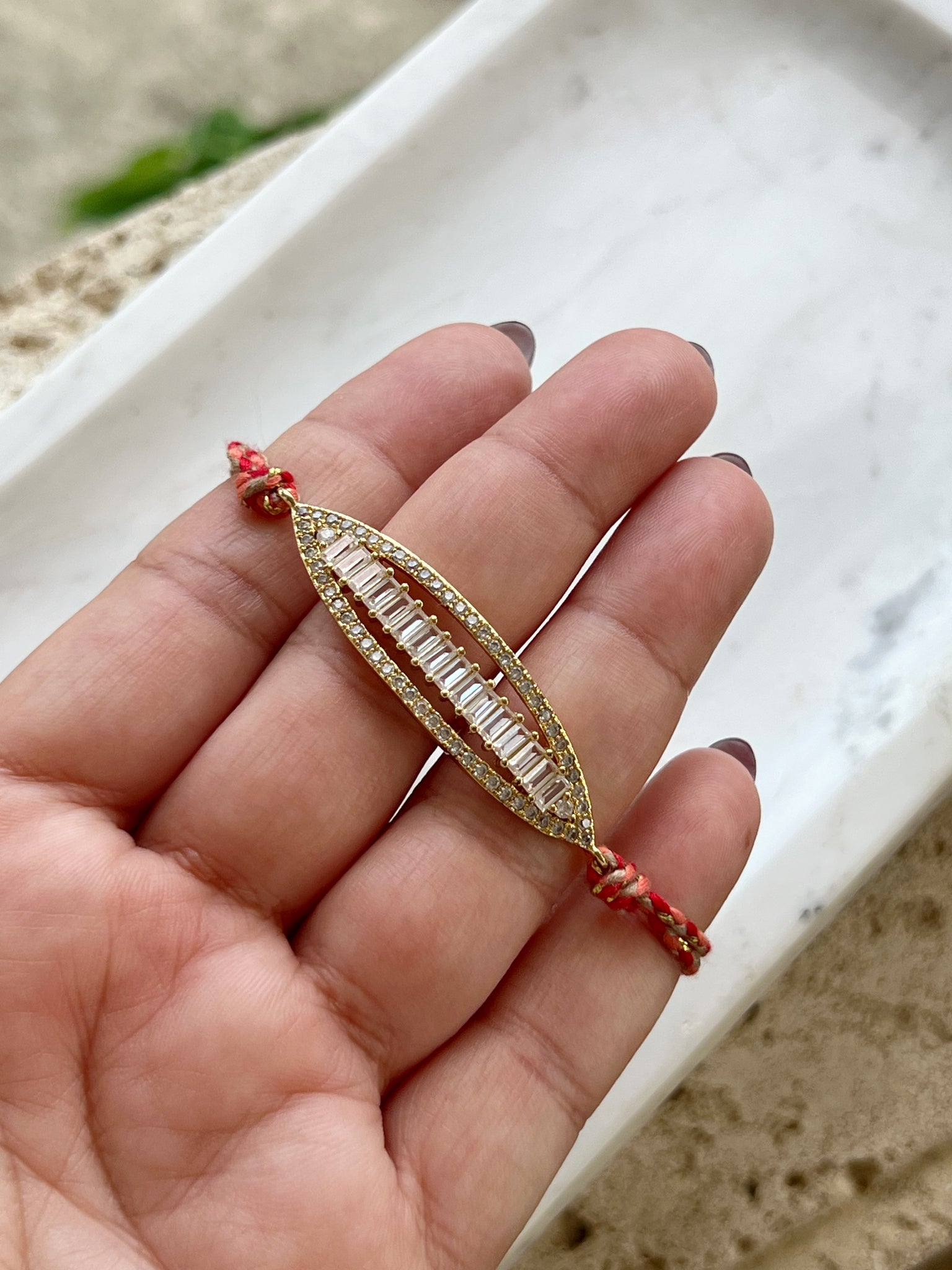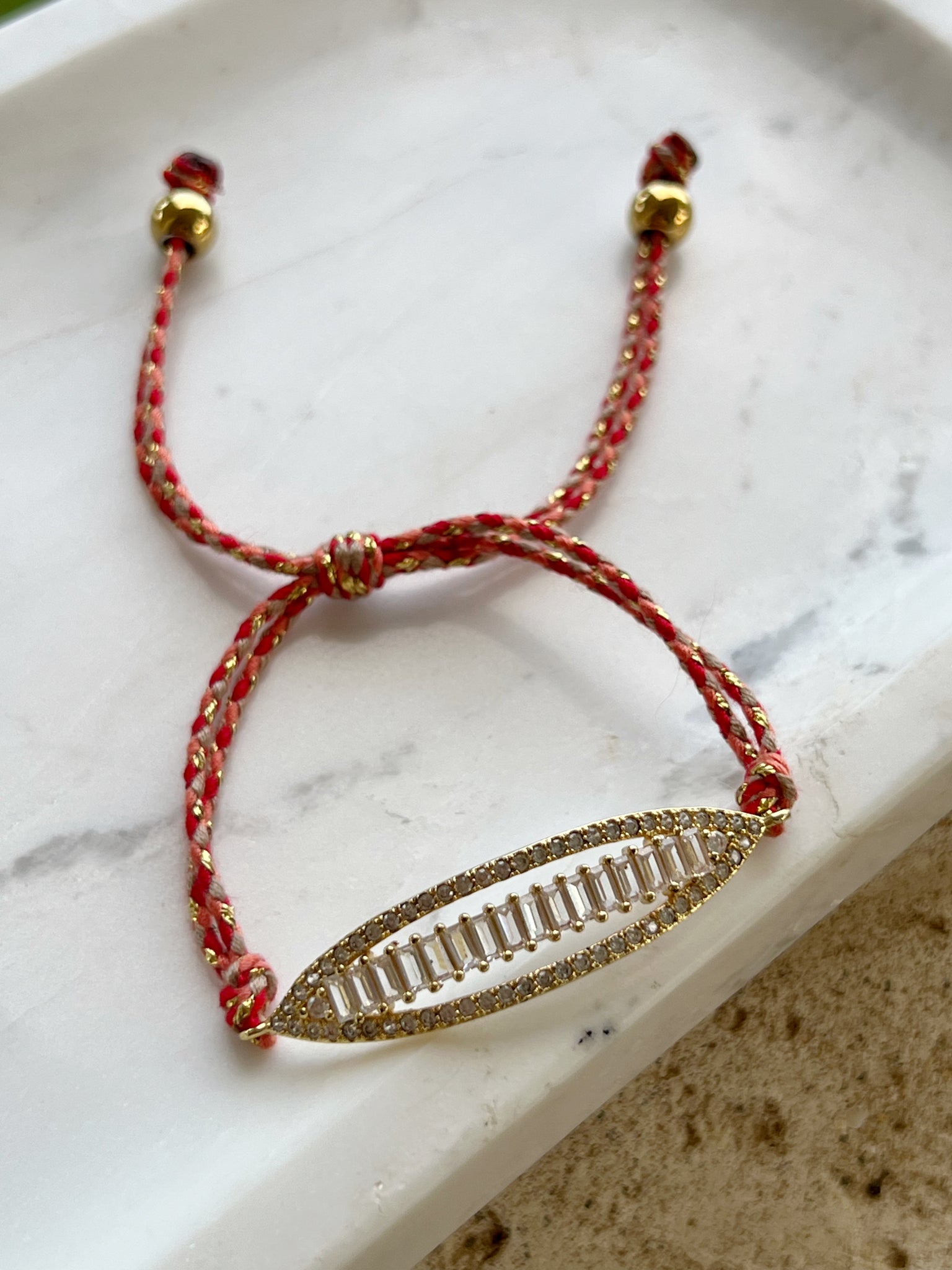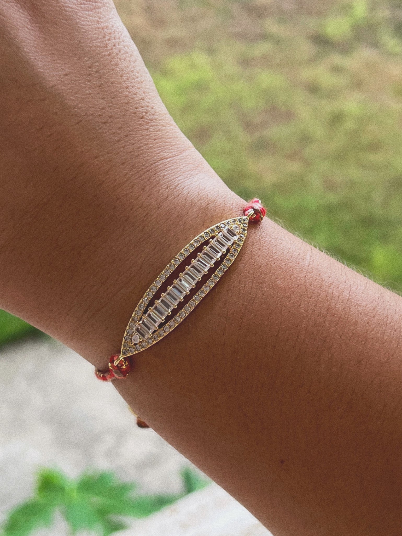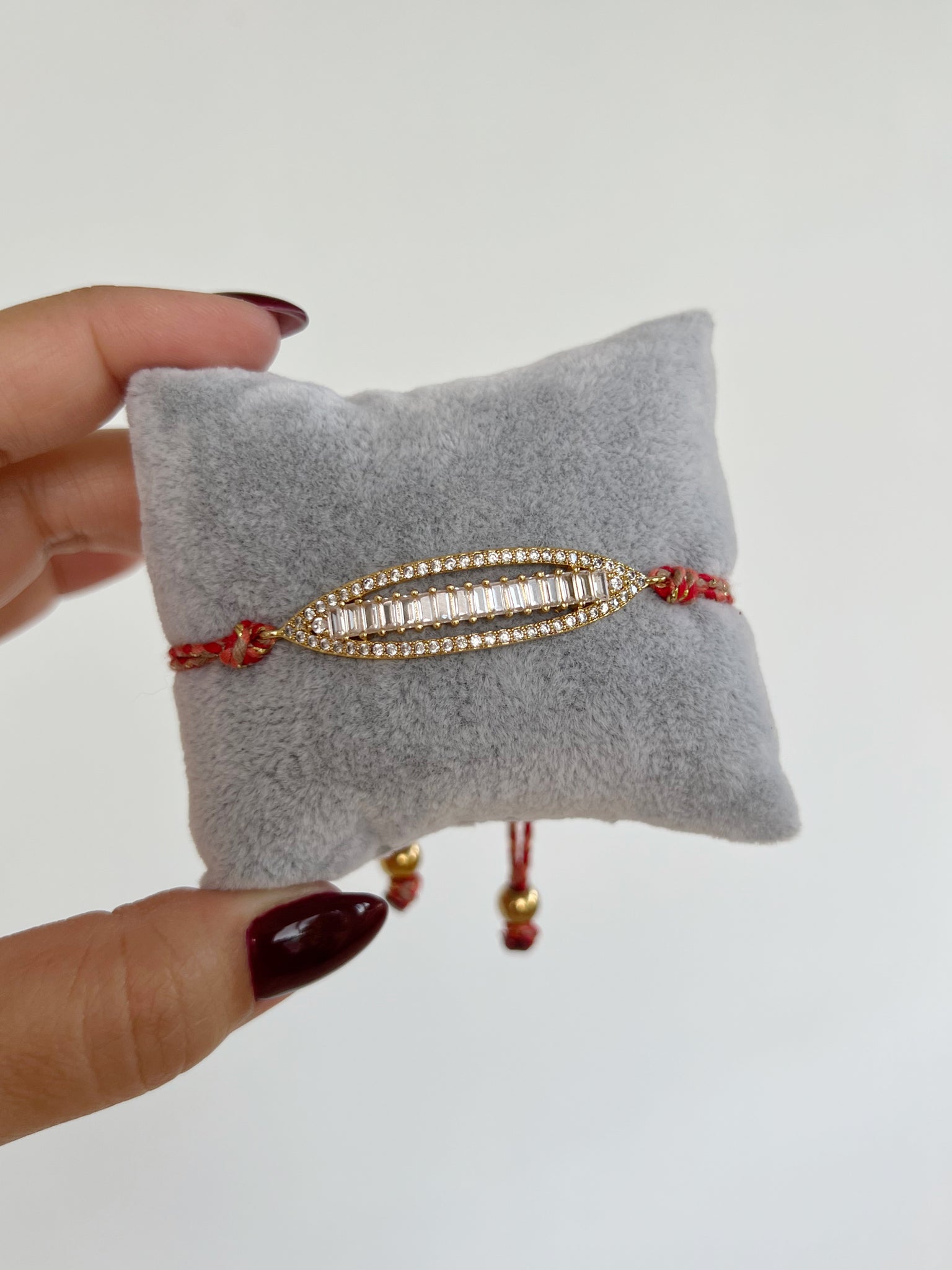 Pulsera ajustable, hecha a mano. Link de zirconia en gold plated. Beads dorados en acero inoxidable.