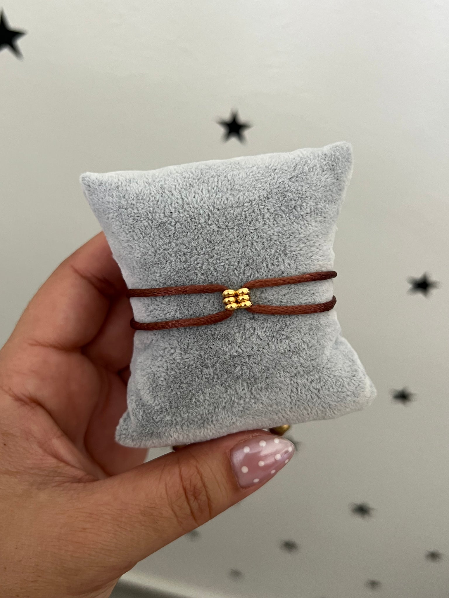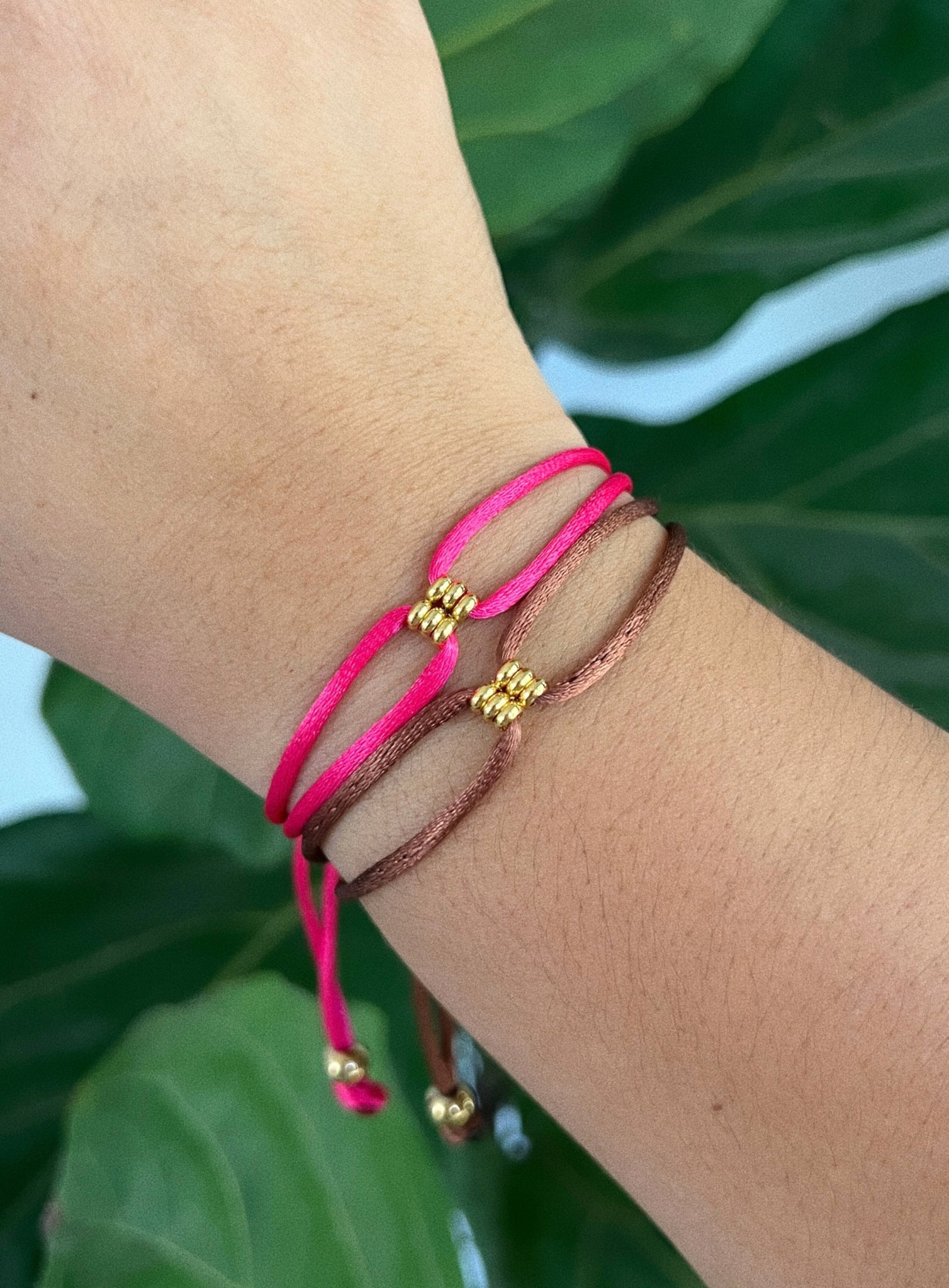 Pulseras ajustables, hechas a mano. Piezas doradas en acero inoxidable. Se venden por separado.