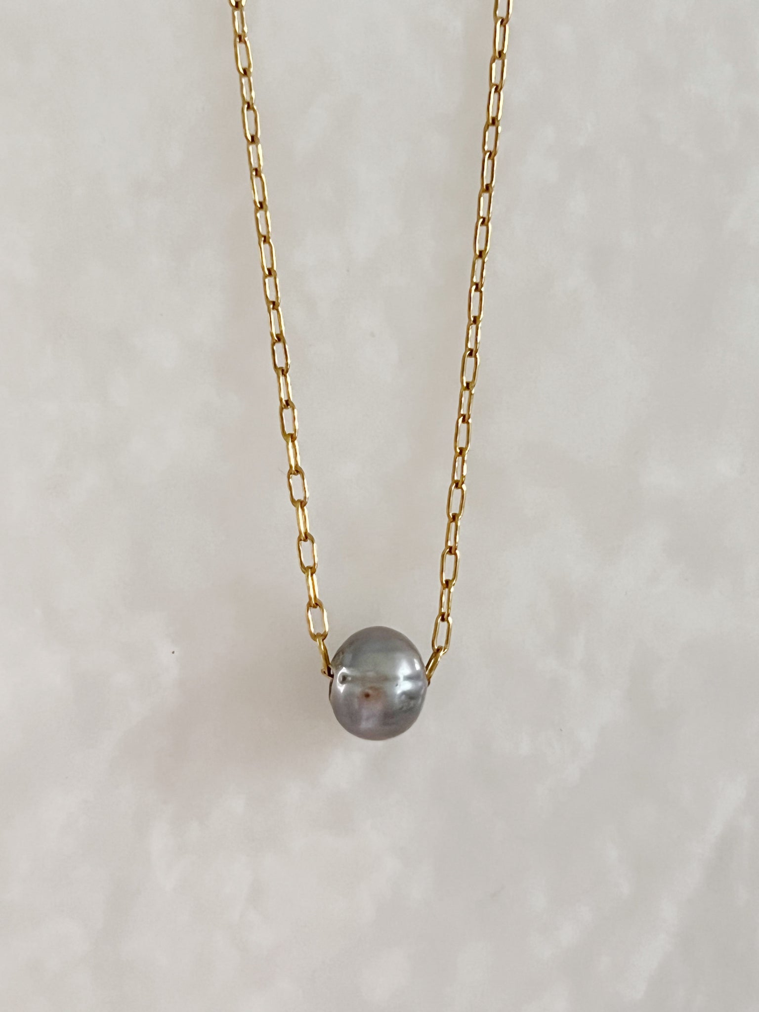 Cadena en acero inoxidable y perlas naturales. Mide 16” y tiene extensión de 2” adicionales.