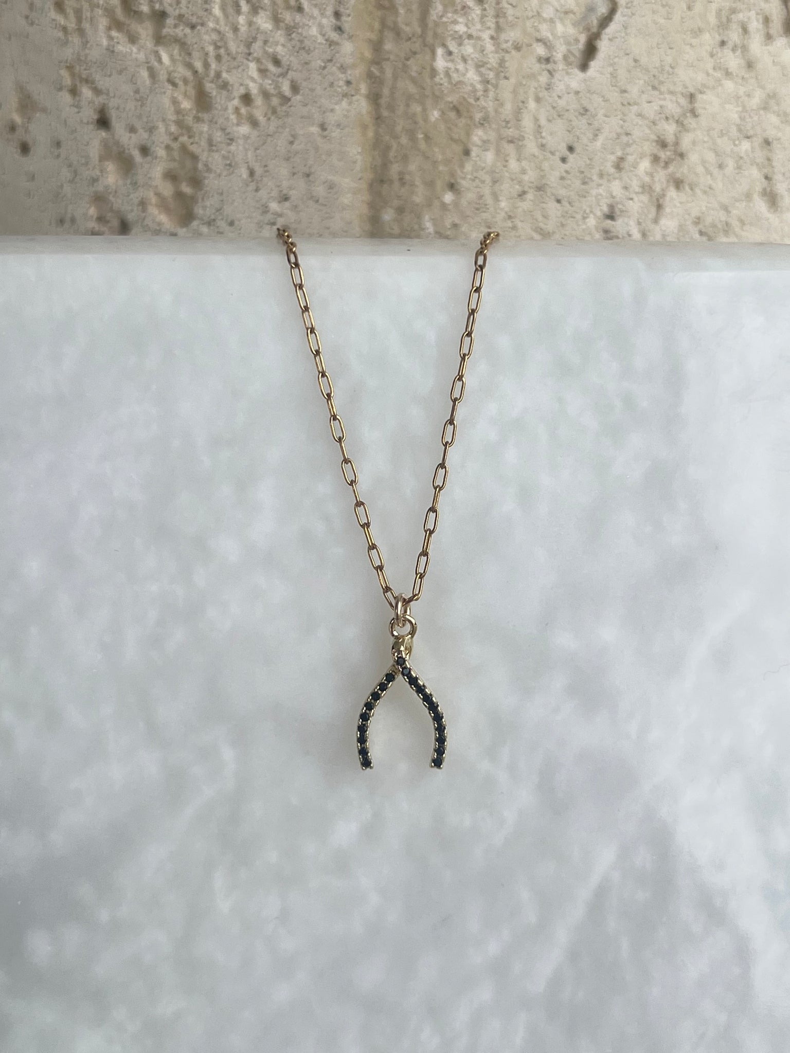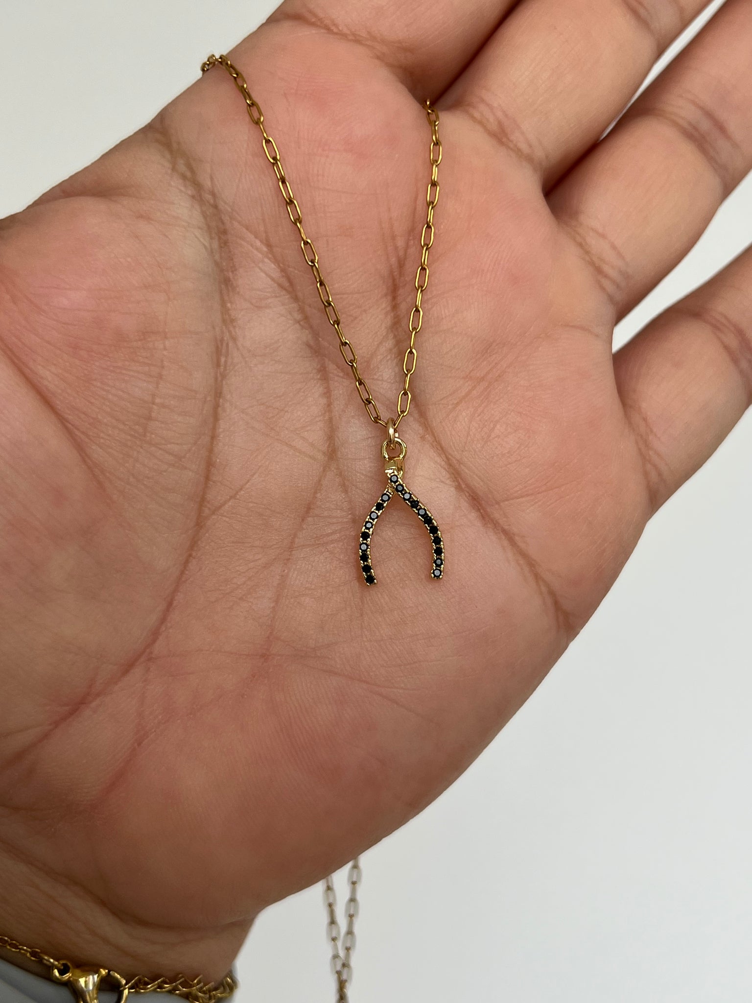 Cadena en acero inoxidable. Charm de hueso en micro pave. Mide 17”.