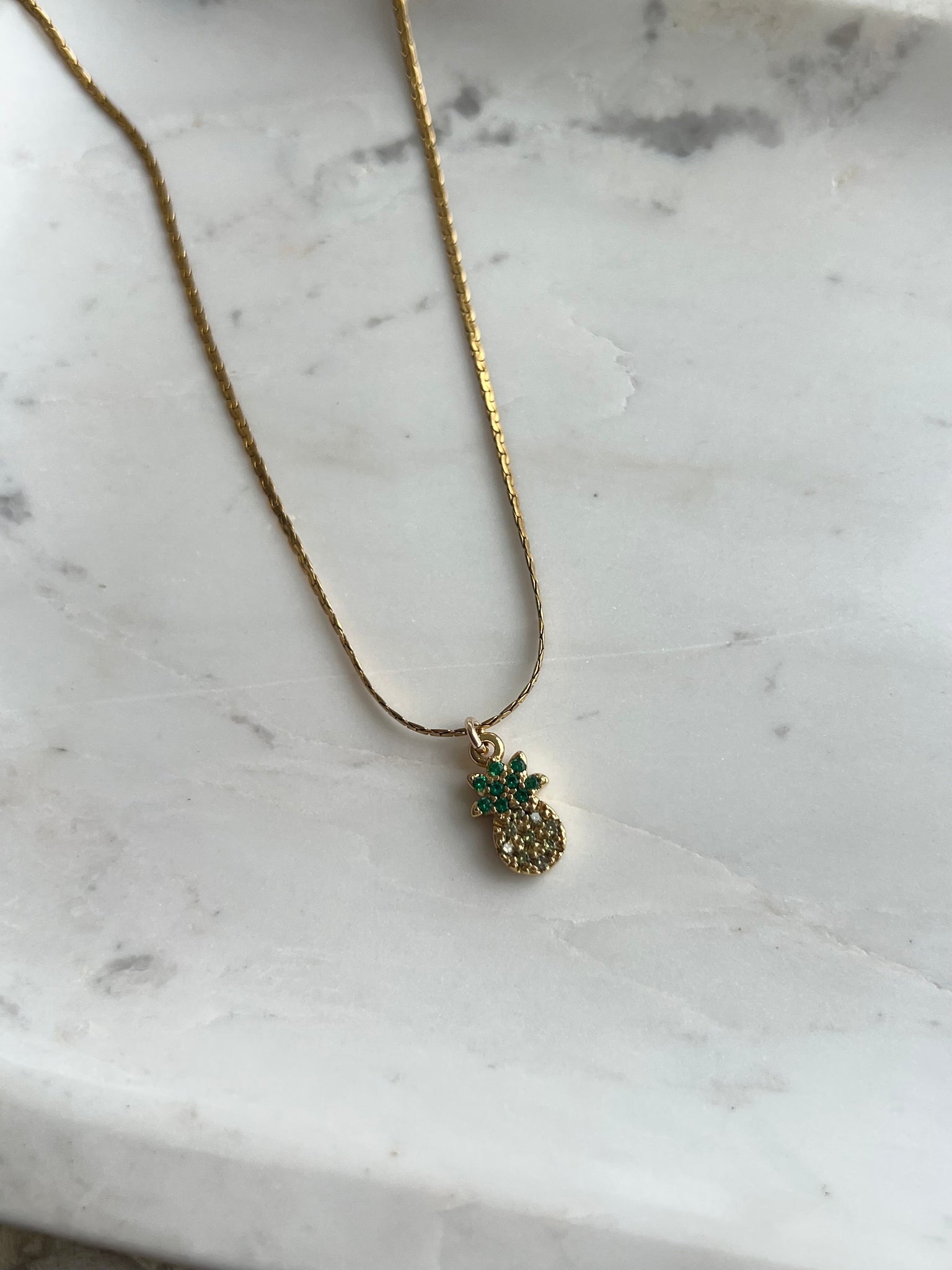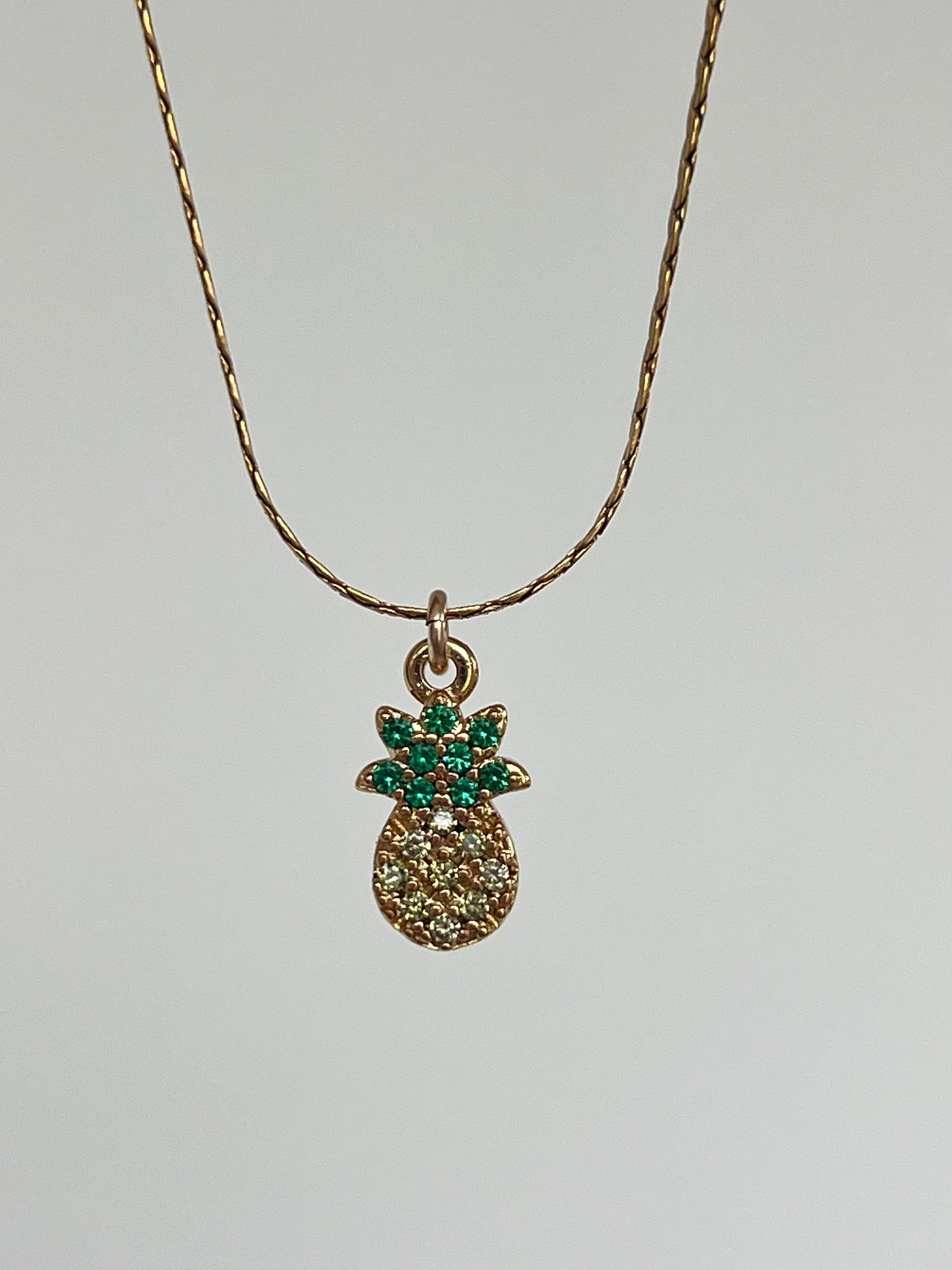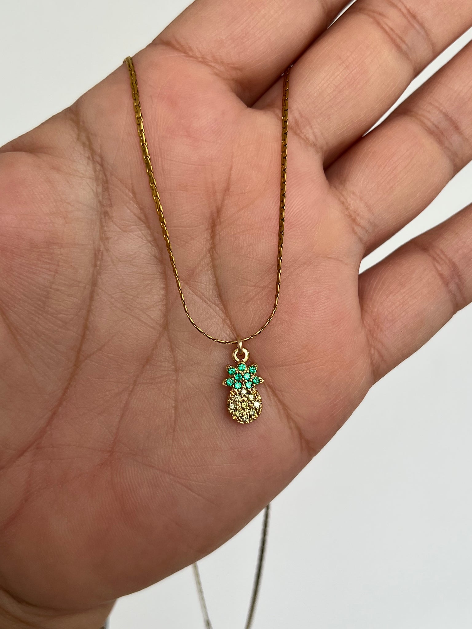 Cadena en acero inoxidable. Charm de piña en micro pave. Mide 18”.
